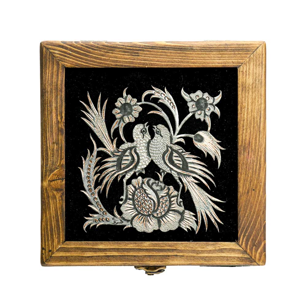 مس به کار رفته در این جعبه، یکی از صنایع دستی اصیل شهر تاریخی اصفهان است. اصفهان با تاریخچهای طولانی در هنرهای دستی، به ویژه در هنرهای فلزی، معروف است و مسگری یکی از کهنترین و مهمترین هنرهای دستی این شهر به شمار میآید. جعبهای که در دست دارید، ترکیبی از هنر چوب و مس را به نمایش میگذارد و اصالت و زیبایی صنایع دستی ایرانی را به رخ میکشد.